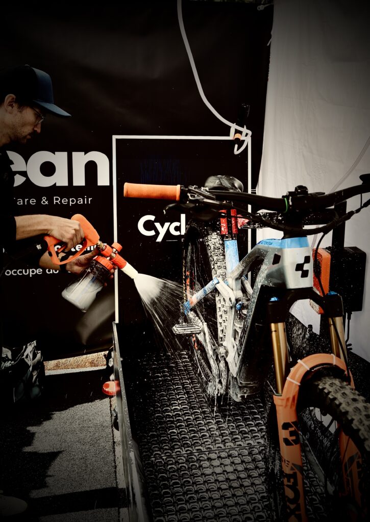 Parce qu’un vélo propre, c’est un vélo qu’on a plaisir à utiliser. Chaque vélo passe par un lavage écoresponsable sur notre banc CyClean développé en interne.