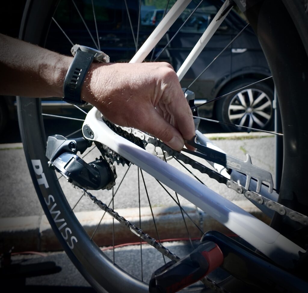 La transmission est dégraissée puis lubrifiée selon les meilleures techniques actuelles — notamment le Chain Waxing, qui vous fera oublier les traces de cambouis sur le mollet.